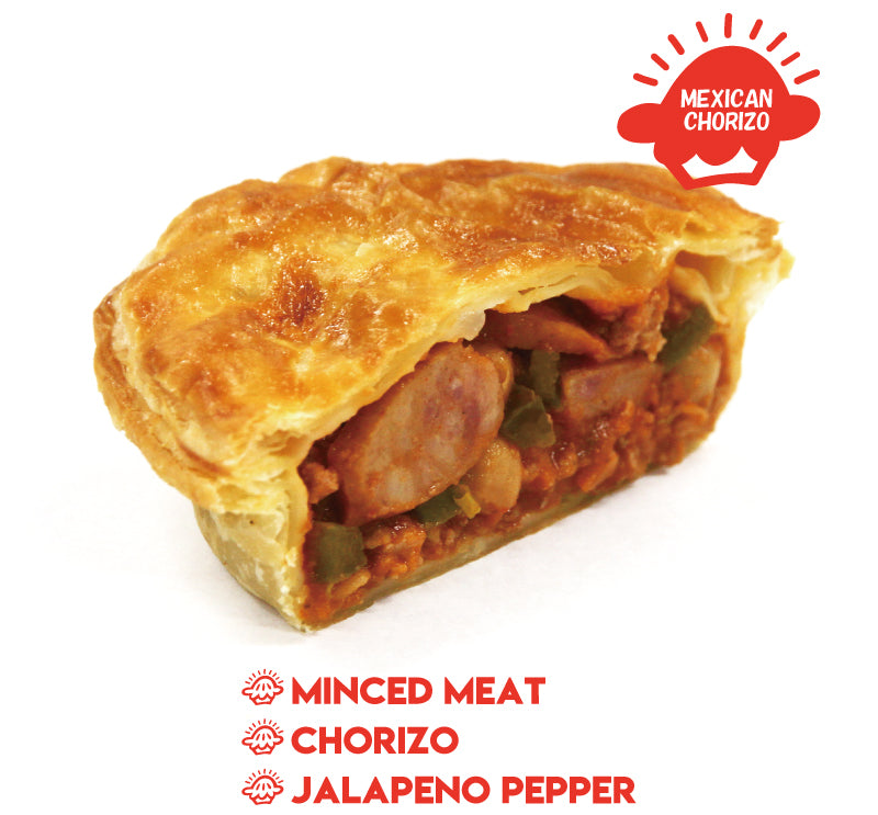 ハラペーニョが入ったメキシカンチョリソーパイはピリ辛でスパイシー。チョリソーと牛ひき肉が入っていて食べ応えもあります!バイロンベイミートパイファクトリーの唯一の辛いパイをいかがでしょうか。